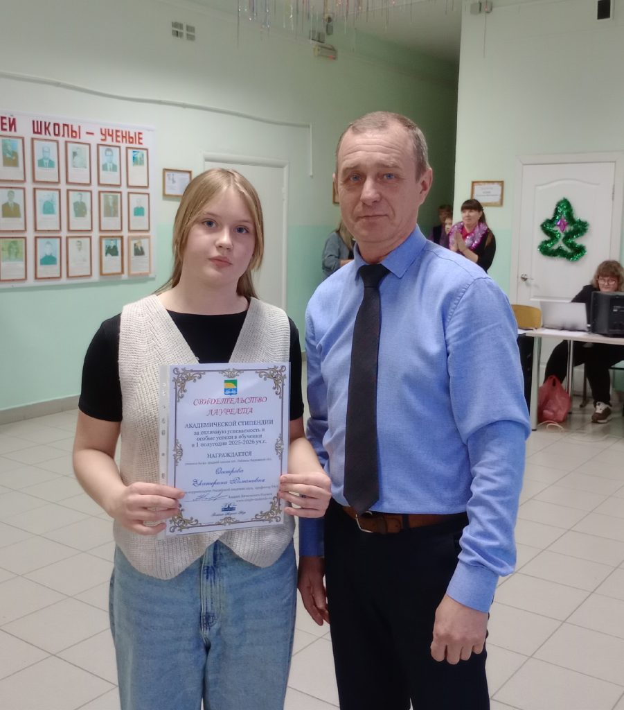 26 декабря на праздничных новогодних вечерах, прошедших в Кировском областном государственном общеобразовательном бюджетном учреждении “Средняя школа пгт Лебяжье”, состоялось традиционное награждение лучших учеников. Академическая стипендия чл.-корр. РАН А.В. Наумова за отличную успеваемость и особые успехи в обучении в первом полугодии 2025-2026 учебного года в размере 5 тысяч рублей вручена ученице 6 А класса Екатерине Осетровой.