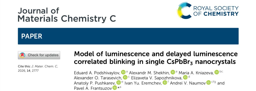 Название: Model of luminescence and delayed luminescence correlated blinking in single CsPbBr3 nanocrystals Аннотация: Cesium lead halide nanocrystals and quantum dots